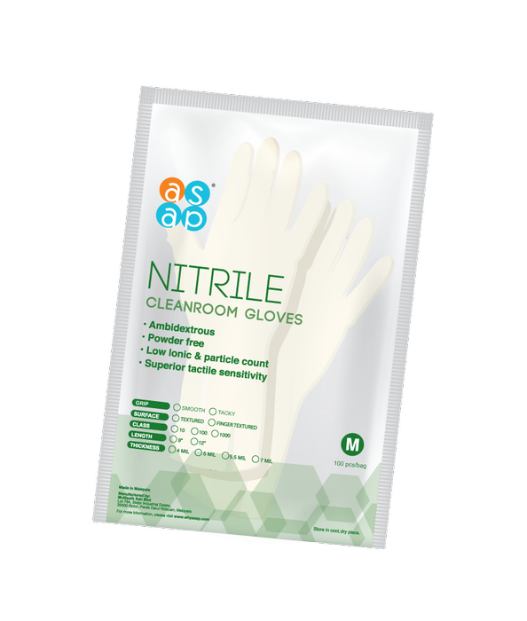 ASAP Cleanroom Gloves are clean-processed and designed to reduce the risk of cross-contamination and provides a varrier against splashes. These gloves are comfortable fit with smooth finish and excellent dexterity.